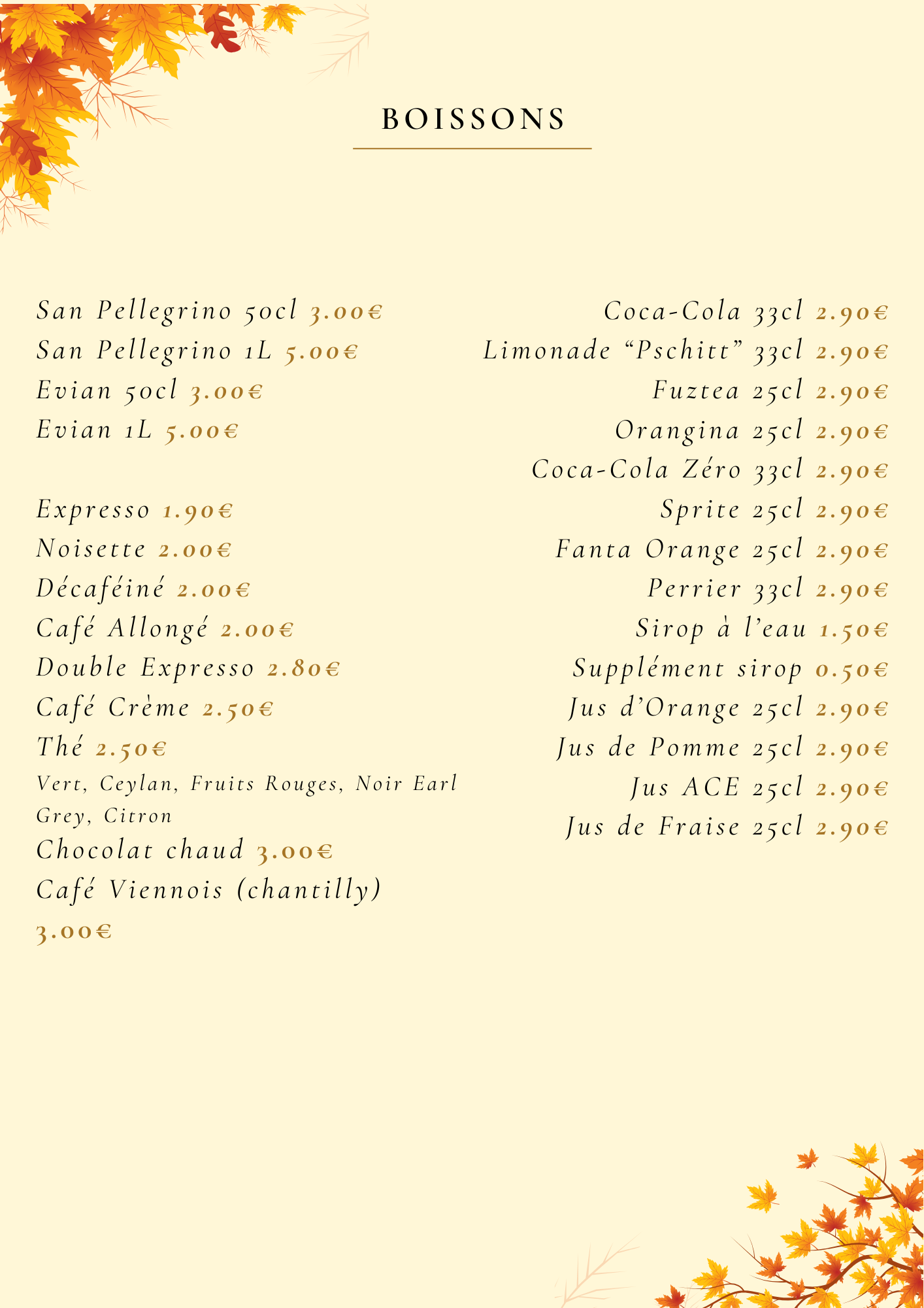 • Boissons