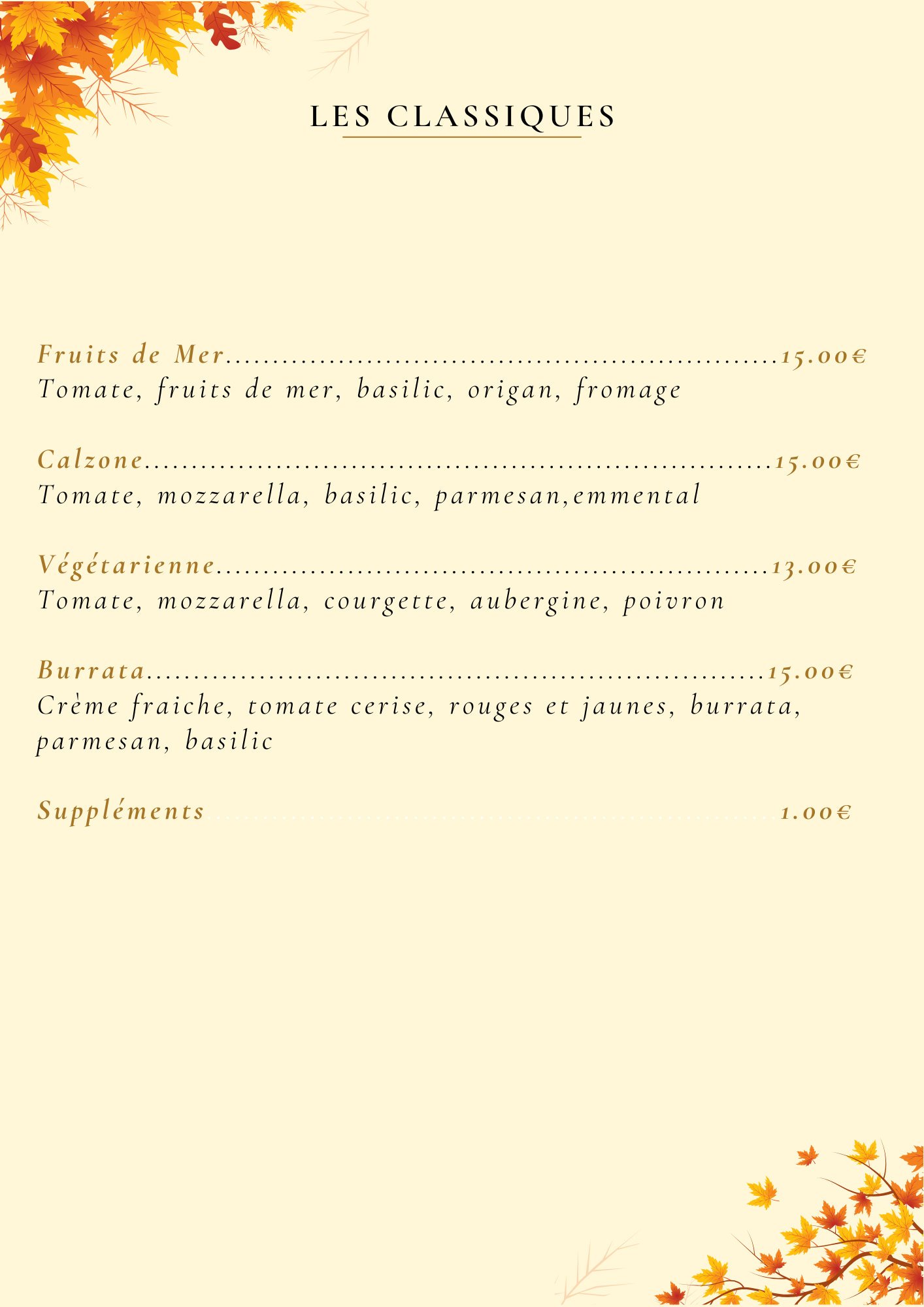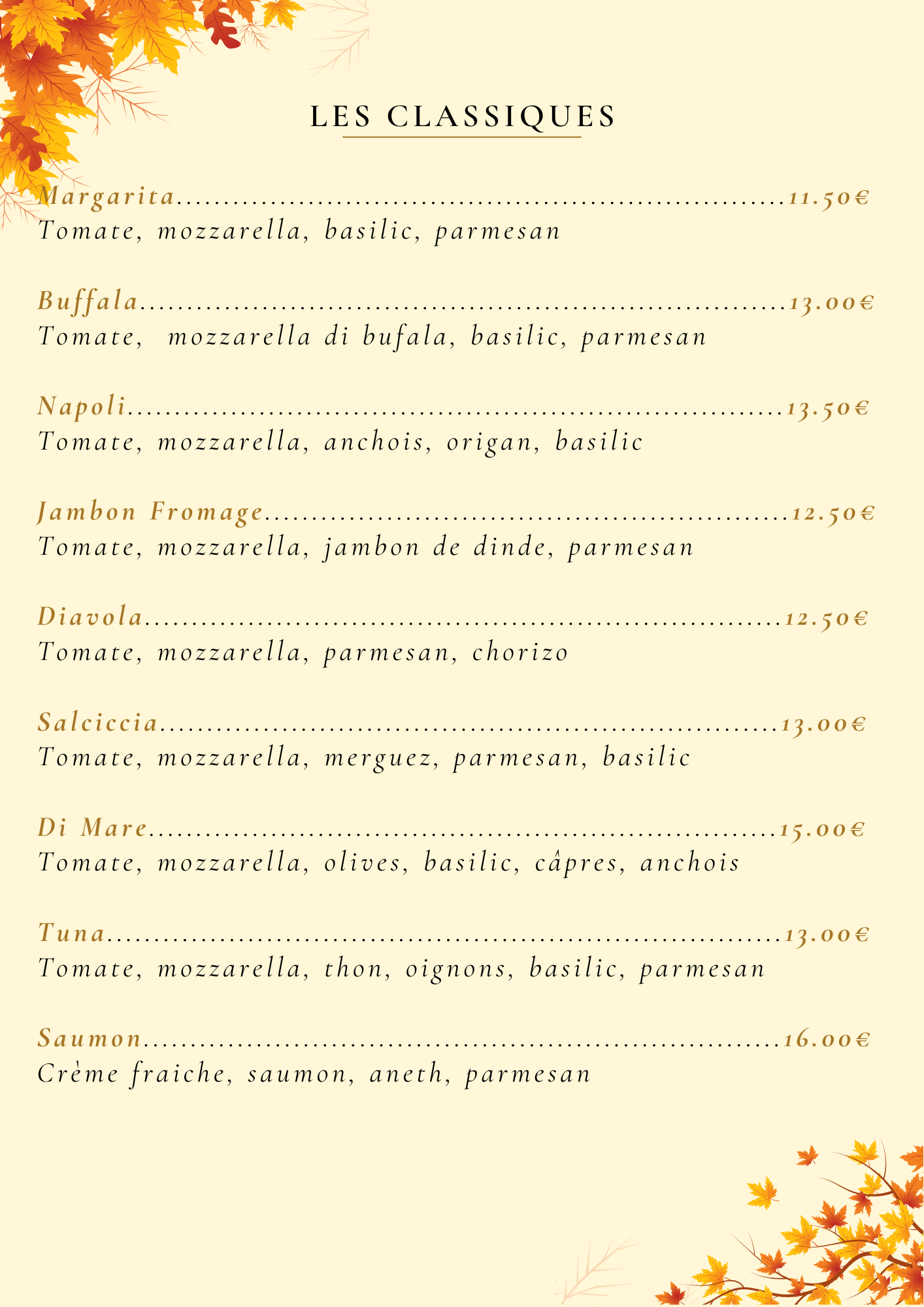 • Pizzas Classiques Ø33