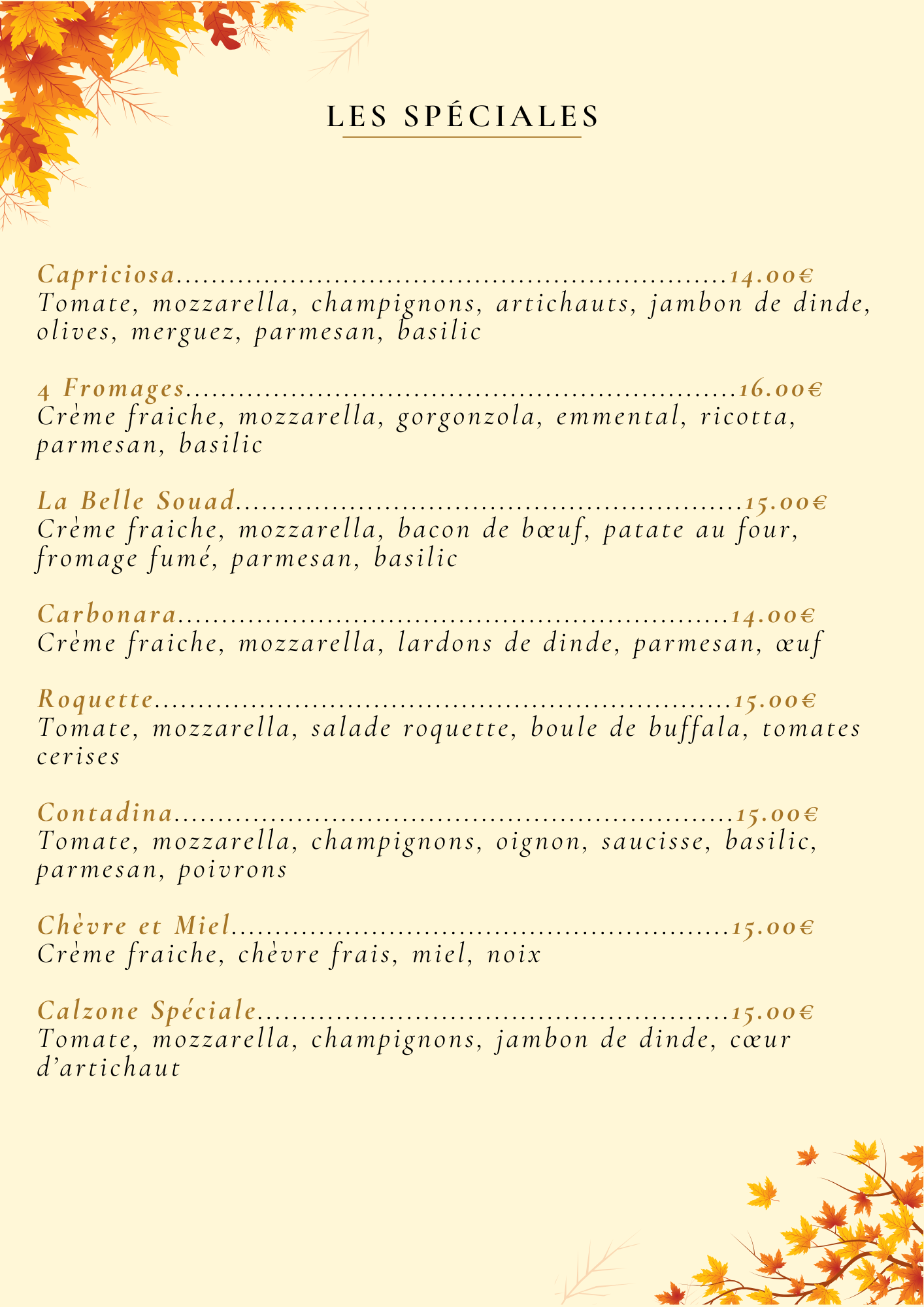 • Pizzas Spéciales Ø33